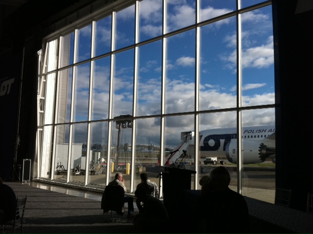 After landing, airport fire service will greet with water salute. Official welcome by LOT to be held in the afternoon. It is expected over thousands of guests.
